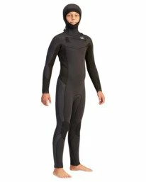 Maximize warmth, durability and performance in the Billabong Boys’ 5/4 Absolute Hooded Full Wetsuit, made from stretchy, eco-conscious neoprene, built with strategically placed seams, high-end materials and advanced construction techniques. Graphene-infused lining and recycled Superflex jersey exterior add incredible flex and heat throughout. And the chest zip entry makes it effortless comfortable. This boys’ full wetsuit features a built in hood for added heat when you need it.