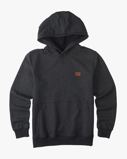 Go for effortless comfort, warmth and style in the Billabong Boy’s Hudson Pullover Hoodie. Made from thick cotton poly, this boys’ pullover features a fixed hood, long sleeves, ribbed trims, kangaroo pouch and leather logo patch at the chest.