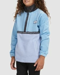 Keep the cold out in the Billabong Boy’s Space Cow Half-Zip Pullover. Made from mid-weight polyester with fleece lining, this boys’ half-zip pullover features a mock neck, elastic cuffs, front hand pockets and a colorblock, cut & sewn design for vintage vibes throughout.